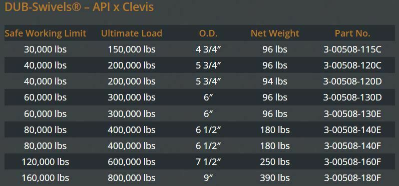 The DUB-Lite® swivel has the ability to pivot at either end. This allows the swivel to best distribute side loads applied to it. The swivel permits rotation of the drill pipe while protecting the utility from twisting. All mechanical components are manufactured from high strength alloy steel and are designed to withstand a straight tensile load of at least 3 times the safe working limit.